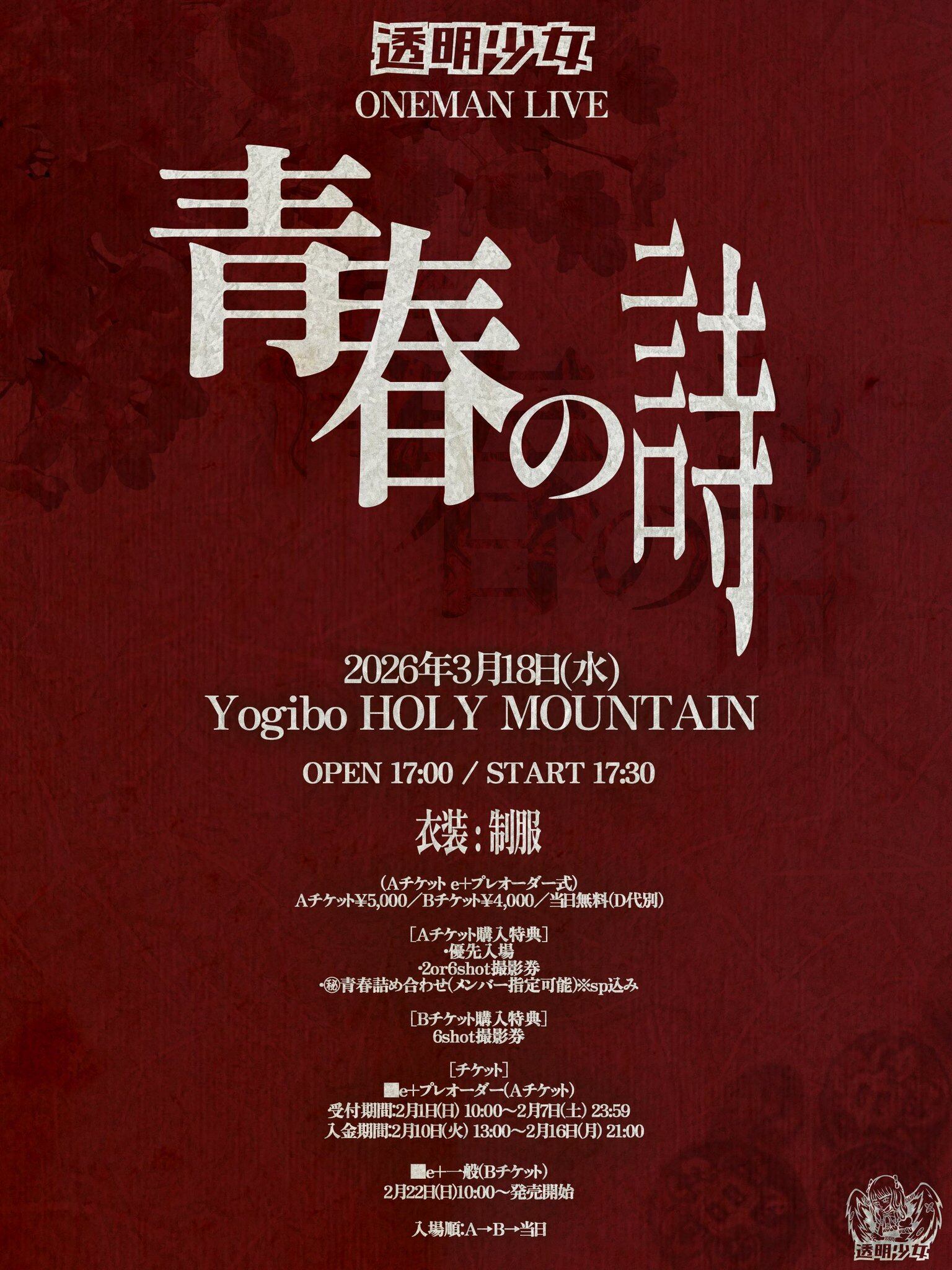 3/18 透明少女 大阪ワンマン公演サポート時に撮影する制服チェキです。
